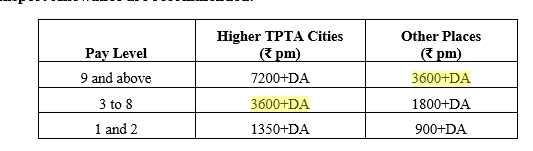 16 Revise the following allowances/advances as under in place of the recommendations made by the 7th CPC :